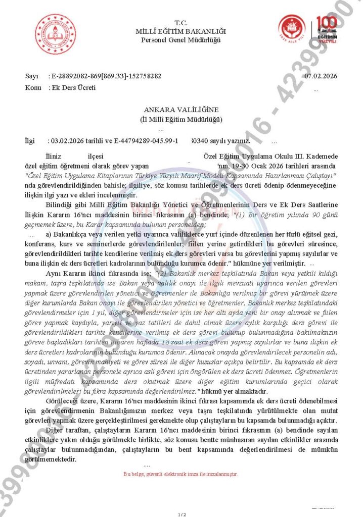 Çalıştaylara Katılan Yönetici ve Öğretmenlere Üzerlerindeki Ek Ders Ücreti Ödenir mi 07.02.2026