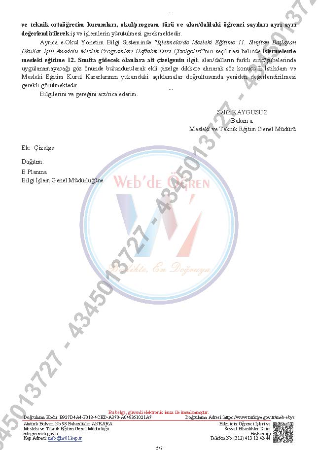 MEB’den 11. Sınıf İşletmelerde Mesleki Eğitim Dersinin Uygulanması Tereddütlerle İlgili Resmi Yazı